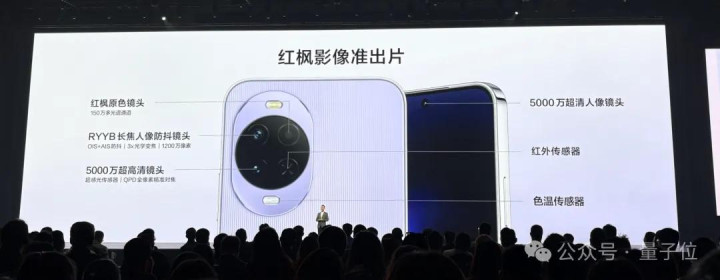 后置摄像头首次搭载由三颗5000万像素RYYB镜头组成的全RYYB红枫影像系统,整体规格一次拉满。