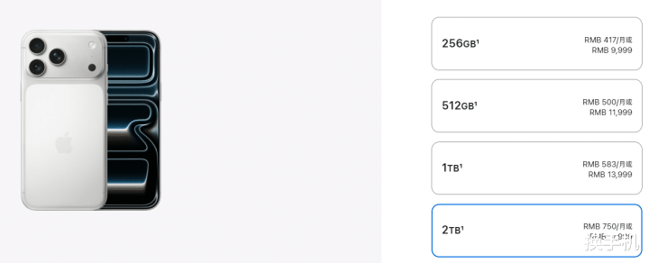 随着各类app和照片视频所占的空间越来越大,苹果在今年9月推出的iPhone17系列上,首次取消了128GB储存,全系256GB起,最高达到了2TB。
